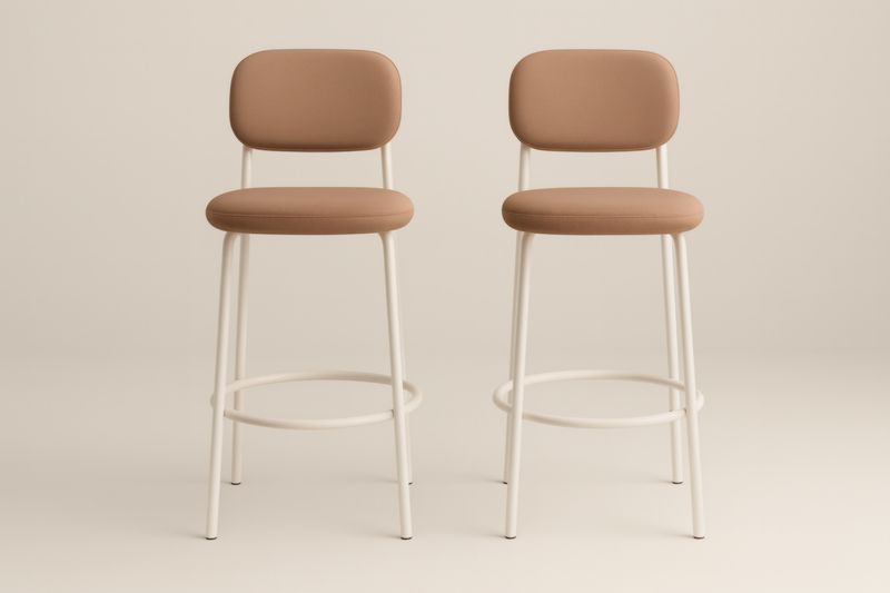 Tabourets de bar en acier blanc avec assise en tissu brun