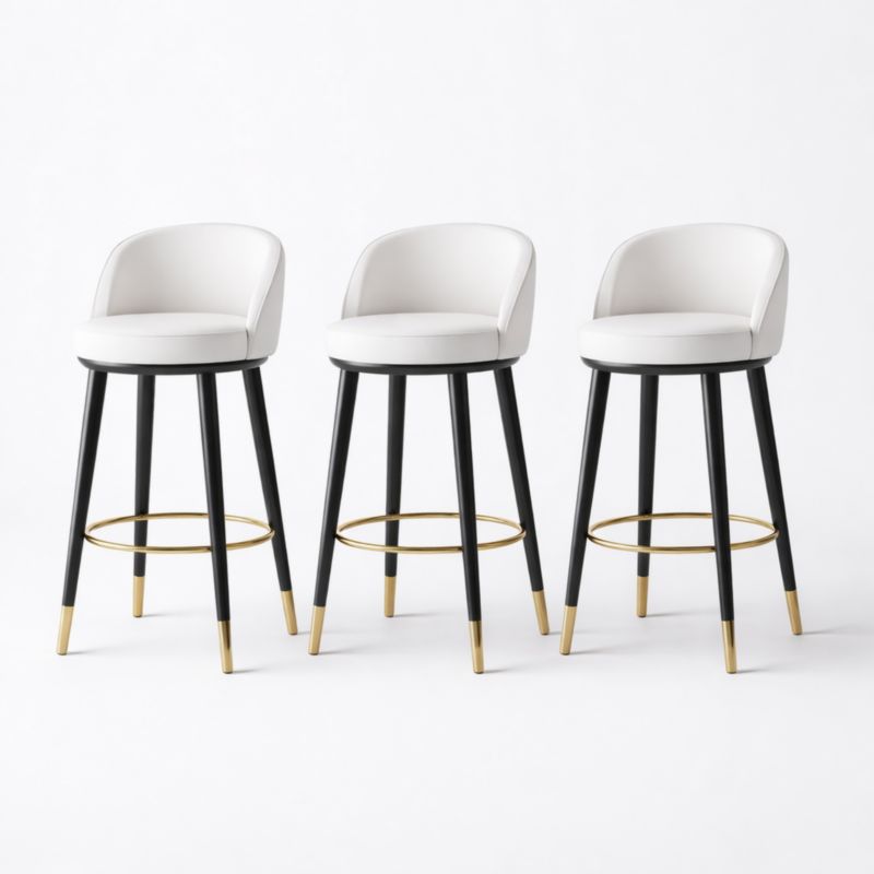Lot de 3 tabourets de bar en métal et similicuir blanc